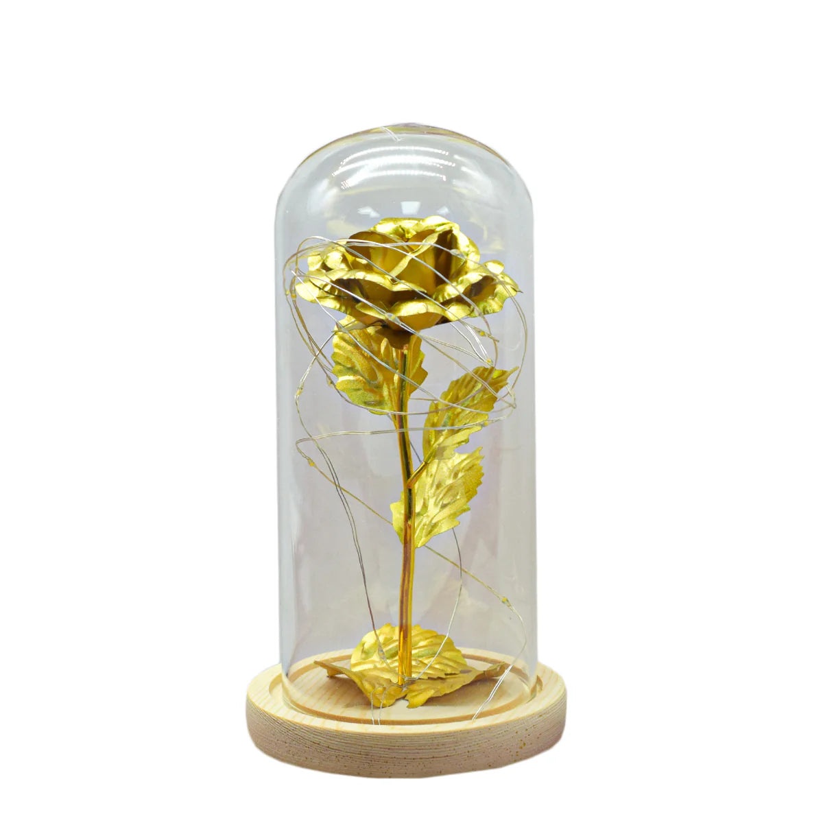 Aranjament floral lucrat manual, in cupola de sticla. Cupola. de sticla transparenta ofera protectie si vizibilitate pentru fiecare. element al aranjamentului floral, florile fiind bine pastrate si usor de. admirat.. Fiind detasabila, aceasta permite acces rapid pentru intretinere si modificari.. Stabilitate si Durabilitate cu Platforma de Lemn Solid. Platforma de lemn solid asigura stabilitate si durabilitate pentru intregul aranjament floral.. Finisajul. elegant al lemnului adauga o nota de rafinament, iar structura solida. sustine perfect cupola si florile, oferind in acelasi timp o prezenta. placuta in decor.. Iluminare Subtila si Eficienta cu LED-uri. Iluminarea LED subtila adauga o nota de ambianta si evidentiaza frumusetea aranjamentului floral.. Consumul. redus de energie al LED-urilor si durata lor lunga de viata asigura o. functionare eficienta si fara probleme, perfecta pentru orice spatiu.. Alimentat. de 3 baterii AAA (acestea nu sunt incluse in pachet), aranjamentul. floral ofera mobilitate si usurinta in utilizare, fara a fi nevoie de o. sursa de alimentare externa.. Aceasta ofera libertate in amplasare si permite aranjamentului sa fie pozitionat in orice loc dorit, fara constrangeri.. Calitate Superioara. Fiecare componenta a acestui aranjament floral este fabricata cu atentie la detalii si cu materiale de inalta calitate.. Expertiza. in fabricatie asigura o constructie robusta si o estetica impecabila,. garantand ca aranjamentul va impresiona cu eleganta si durabilitatea sa.. Specificatii. Dimensiuni: Ø9 x 20 cm. Material: Sticla, lemn, PP