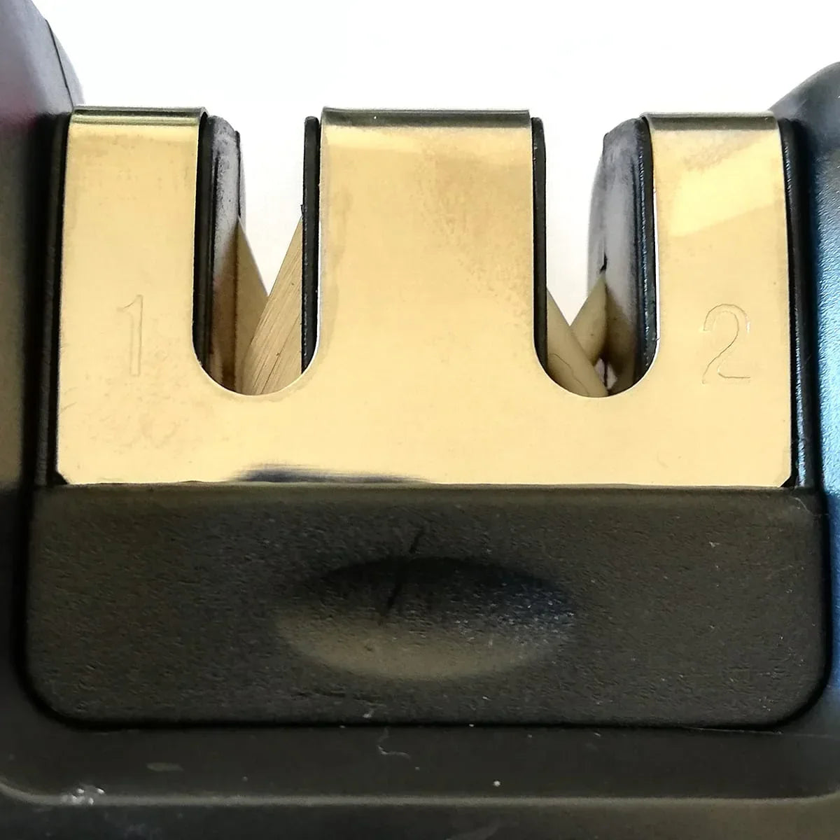 Ascutitor cutite LMYH, plastic, lame vidia & ceramice. Ascutitor cutite profesional prevazut cu 2 nivele de ascutire.. Primul nivel are lame vidia si este indicat pentru cutitele care nu au fost ascutite timp indelungat.. Al doilea nivel contine doua lame ceramice fine pentru mentinerea ascutirii cutitelor.. Maner ergonomic si baza cauciucata pentru manevrare confortabila si in siguranta.