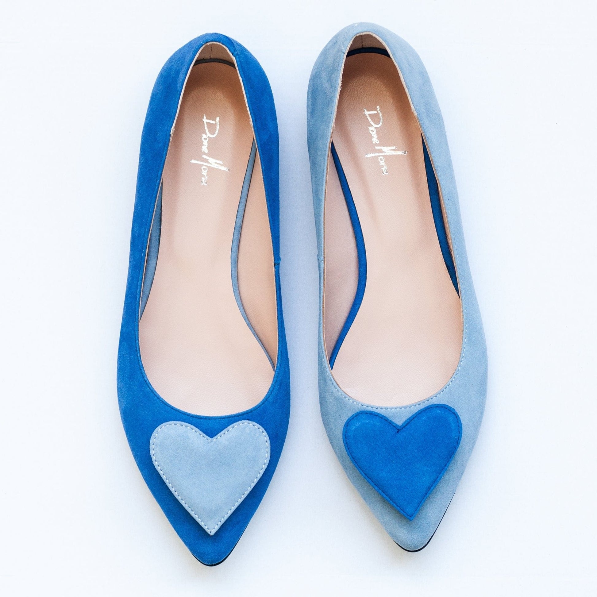 Balerini asimetrici din piele intoarsa bleu cu albastru Freya