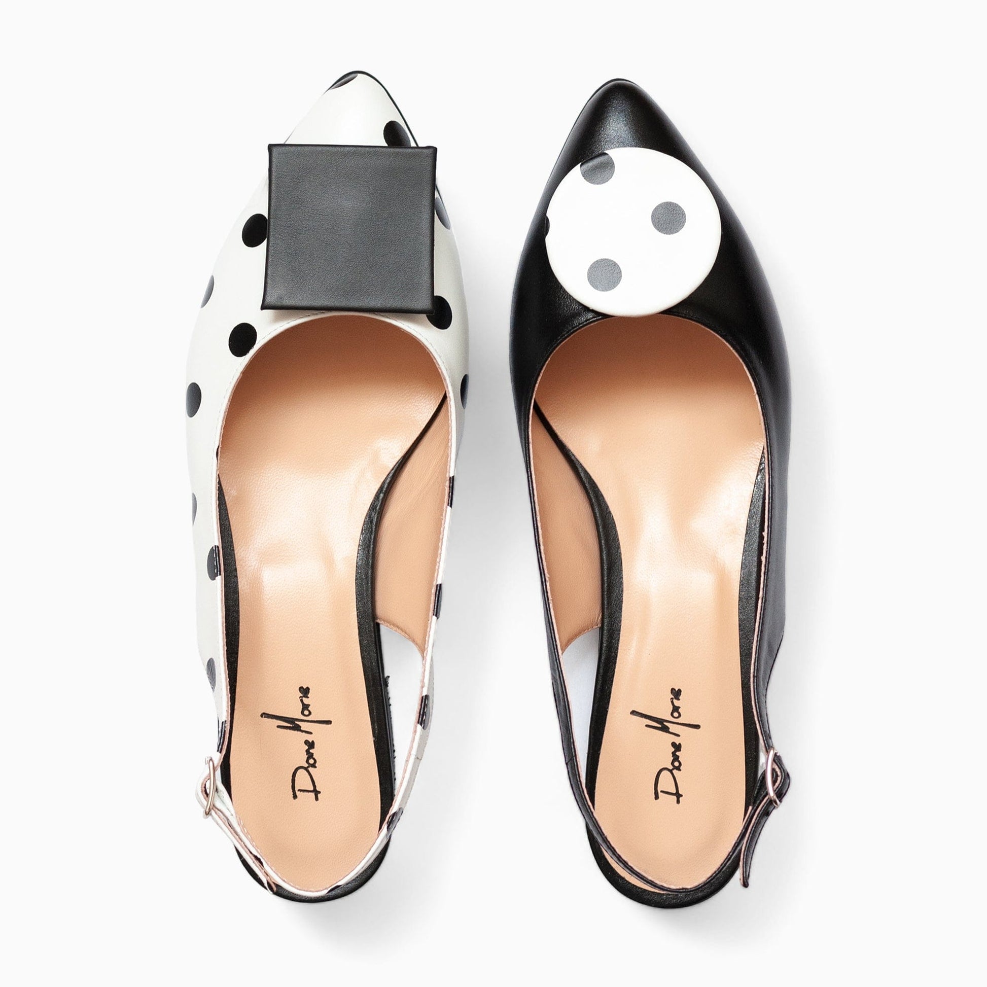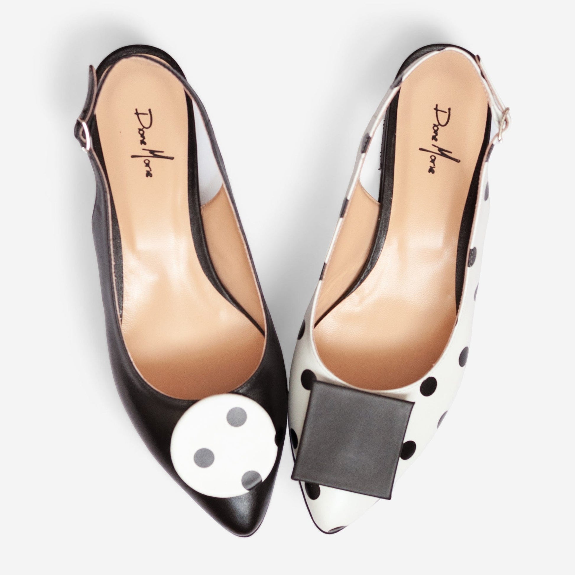- Balerini asimetrici din piele naturala alba cu buline negre;