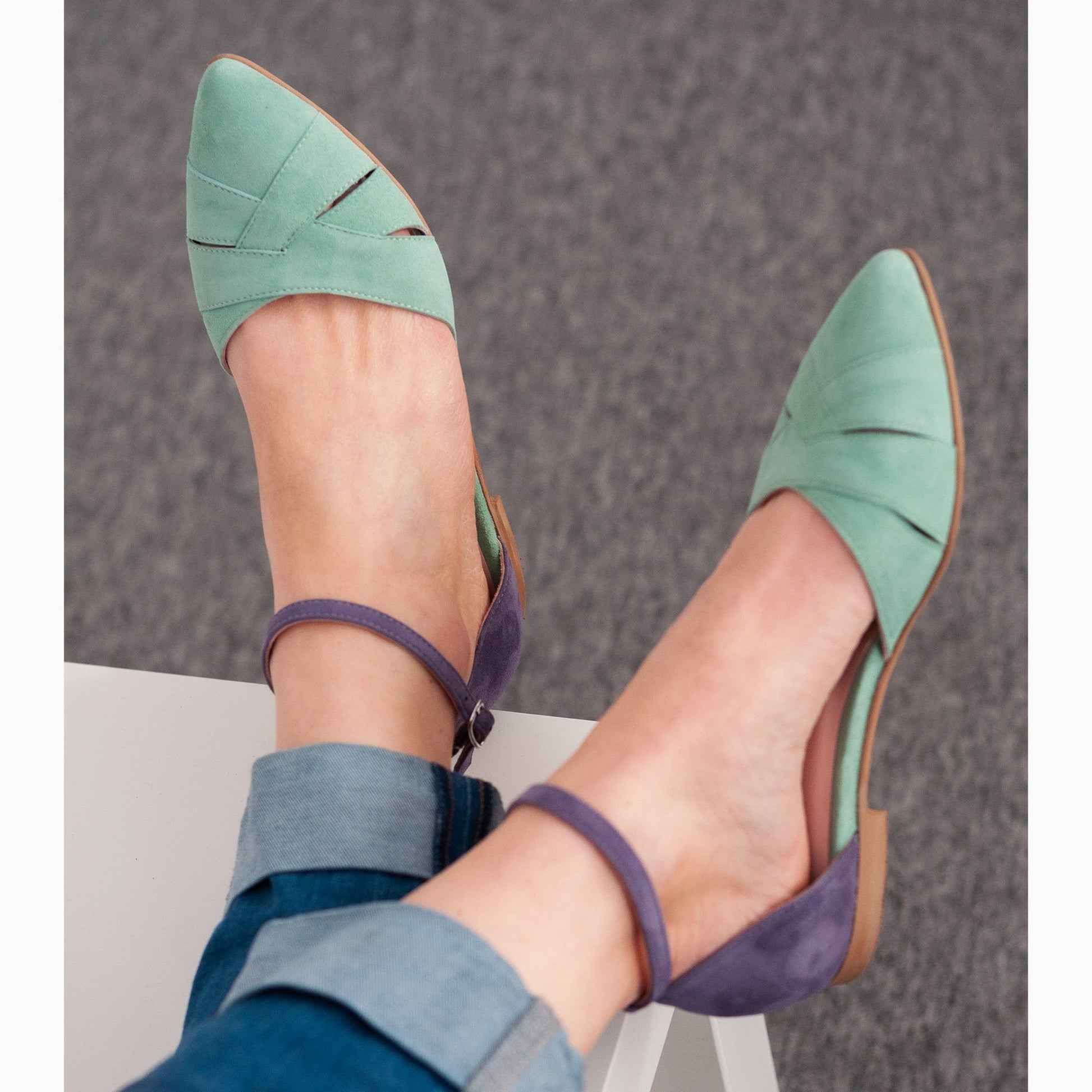 - Balerini decupati din piele naturala vernil cu mov;