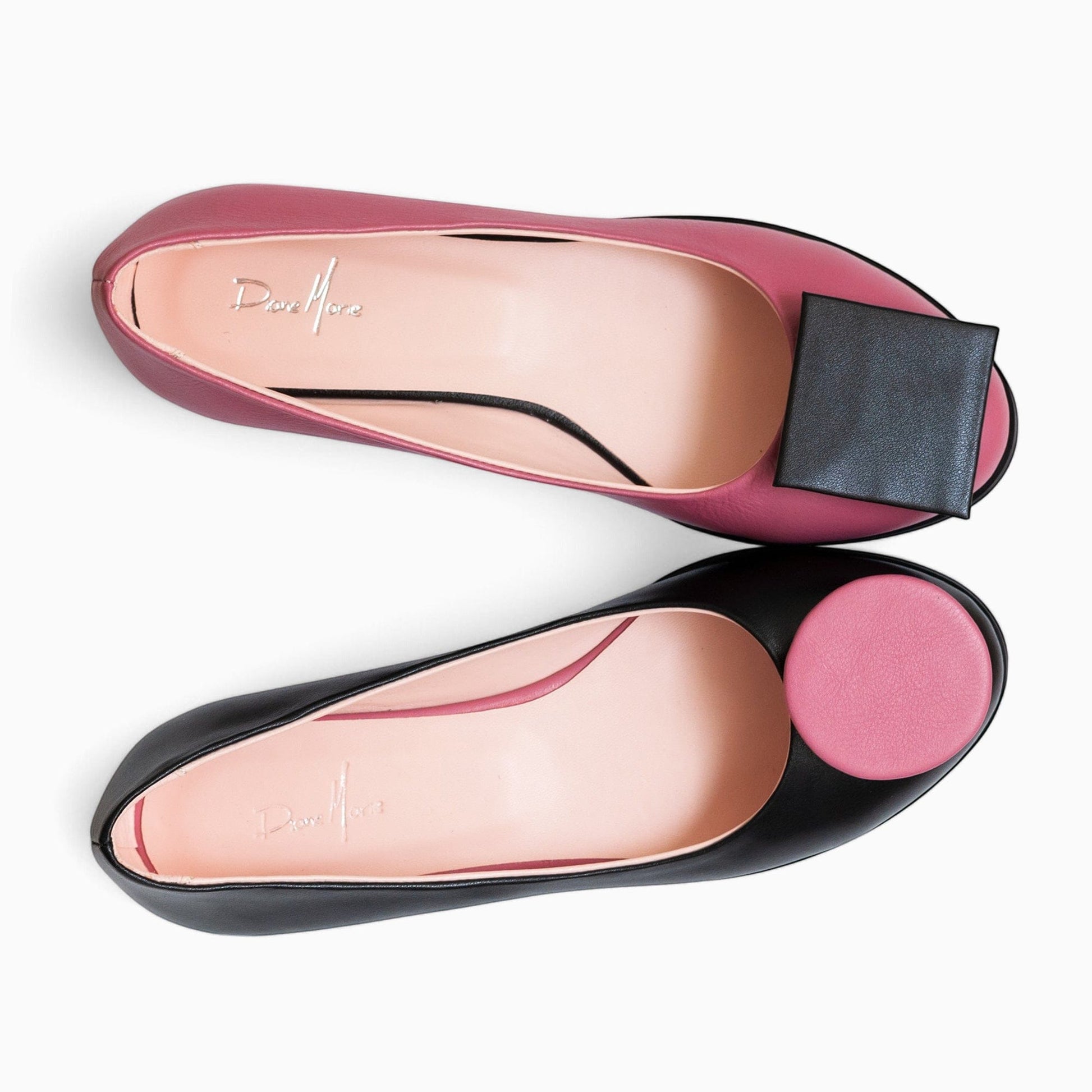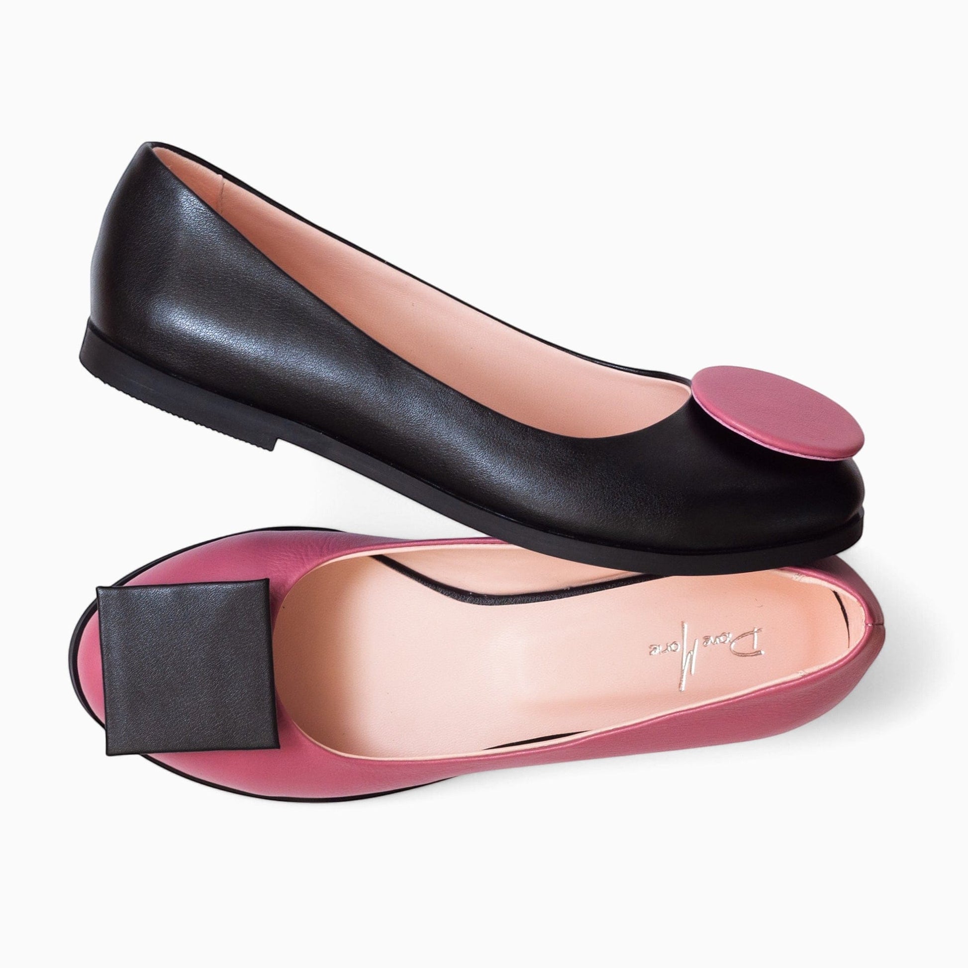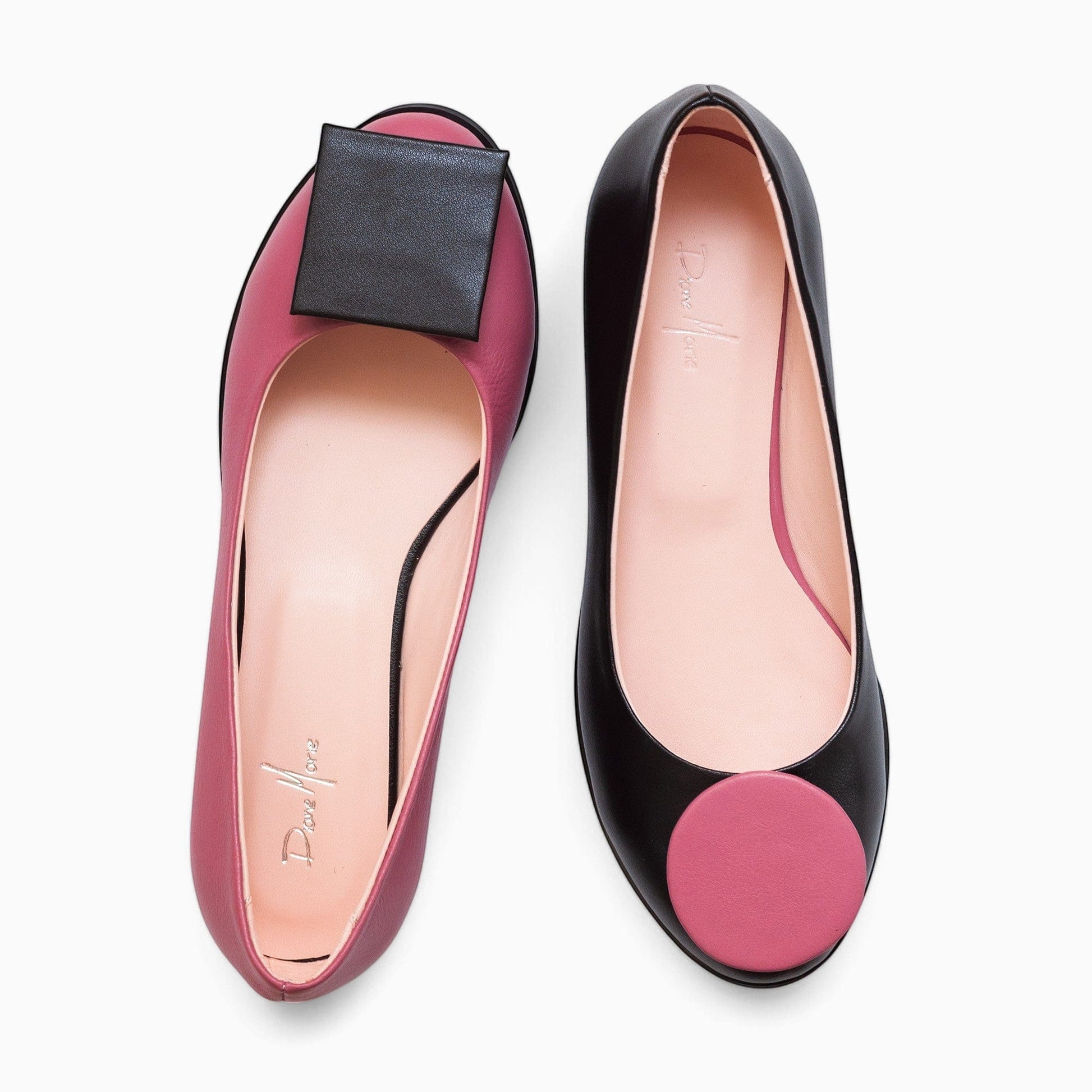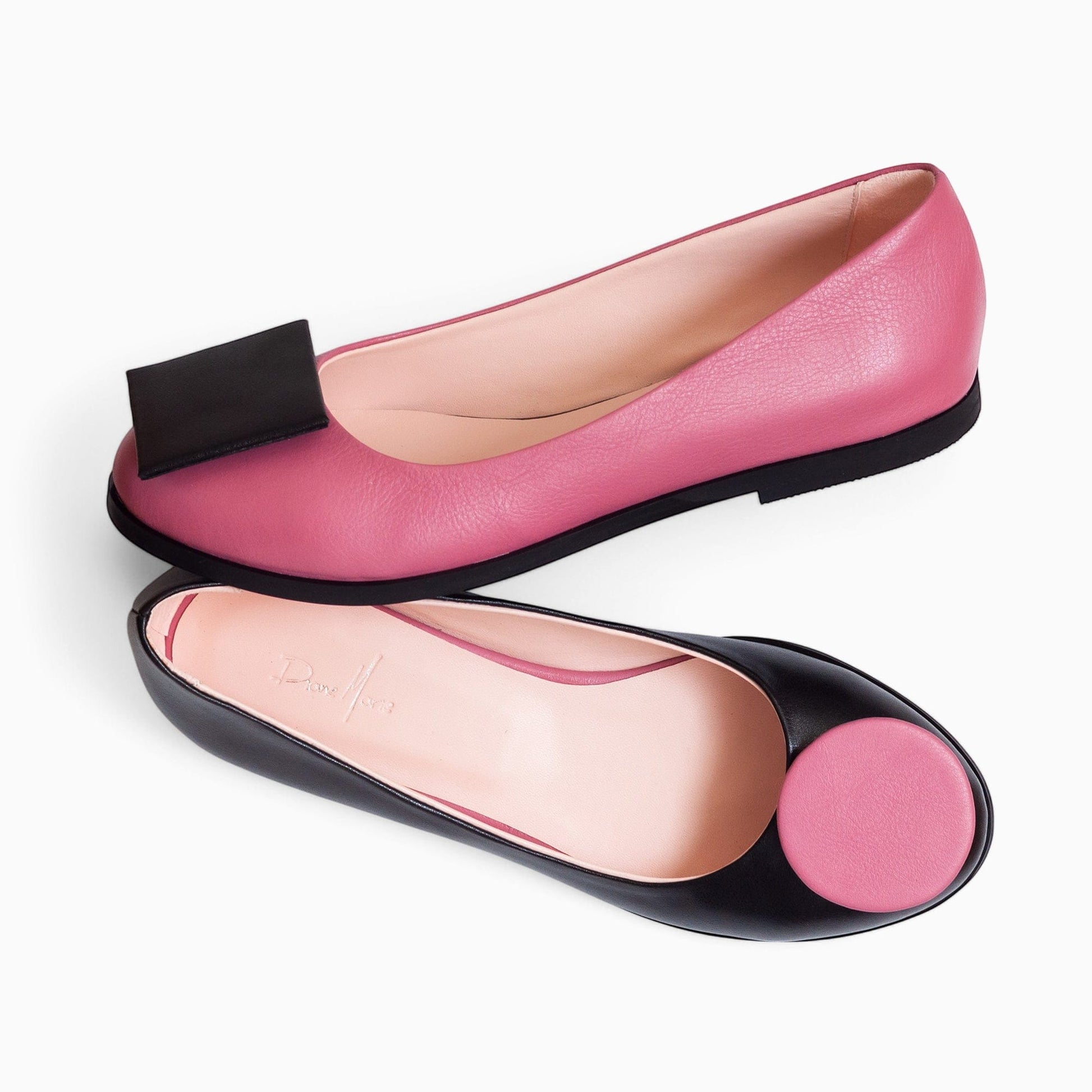 - Balerini asimetrici din piele naturala neagra cu roz;