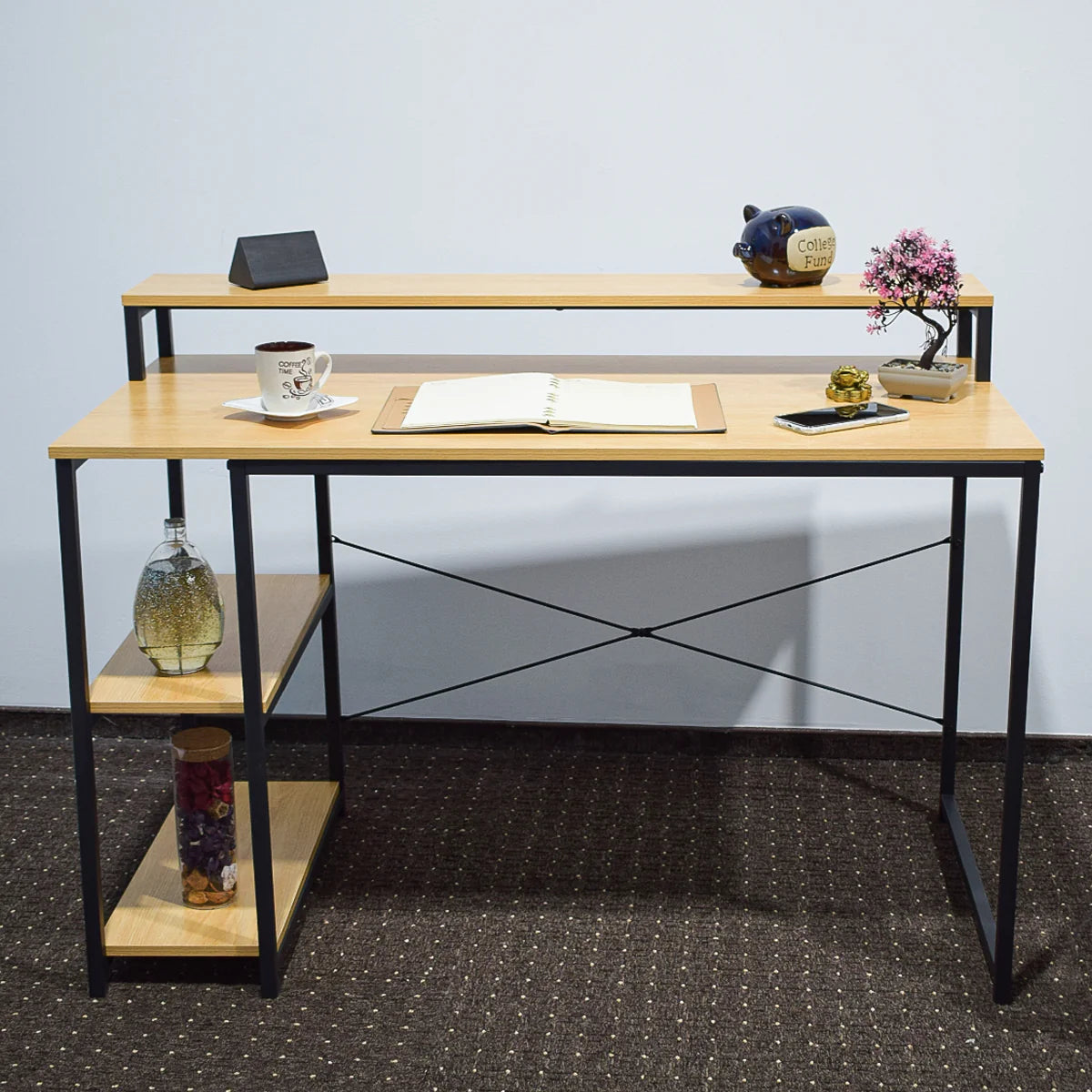 Birou cu cadru metalic, inaltime totala 87cm, Naimeed D02. Construit dintr-un blat de MDF si un cadru solid de metal, acest produs ofera atat un aspect estetic deosebit, cat si o rezistenta sporita.. Blatul de MDF ofera o suprafata plana si neteda, usor de curatat si intretinut.. Acesta este rezistent la zgarieturi si abraziune, pentru a face fata utilizarii zilnice.. Cadrele de metal ofera o structura solida si robusta, care poate sustine cu usurinta greutatea obiectelor de pe birou.. Metalul este, de asemenea, rezistent la coroziune, astfel incat biroul dvs. va avea o durata de viata indelungata.. Design placut si avantajos. Designul minimalist si modern al biroului face ca acesta sa se potriveasca perfect in orice decor de birou sau camera de lucru.. Dimensiunile sale generoase ii permit sa ofere o suprafata spatioasa de lucru, fara a ocupa mult spatiu in camera.. Reprezinta o alegere excelenta pentru oricine cauta o combinatie intre estetica, durabilitate si functionalitate.. Specificatii. Dimensiuni: 120x60x87cm. Culoare: Mesteacan, negru. Material: MDF, metal. Grosime blat: 1.5cmAtentie. Imaginile sunt cu titlu de prezentare si pot avea mici diferente de nuante.. Obiectele suplimentare folosite in imagini nu sunt incluse in pachet.. Produsul se livreaza demontat si este insotit de instructiuni pentru asamblare.