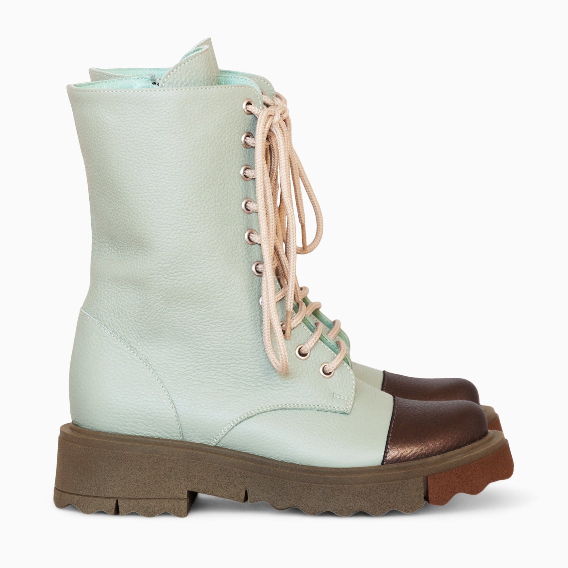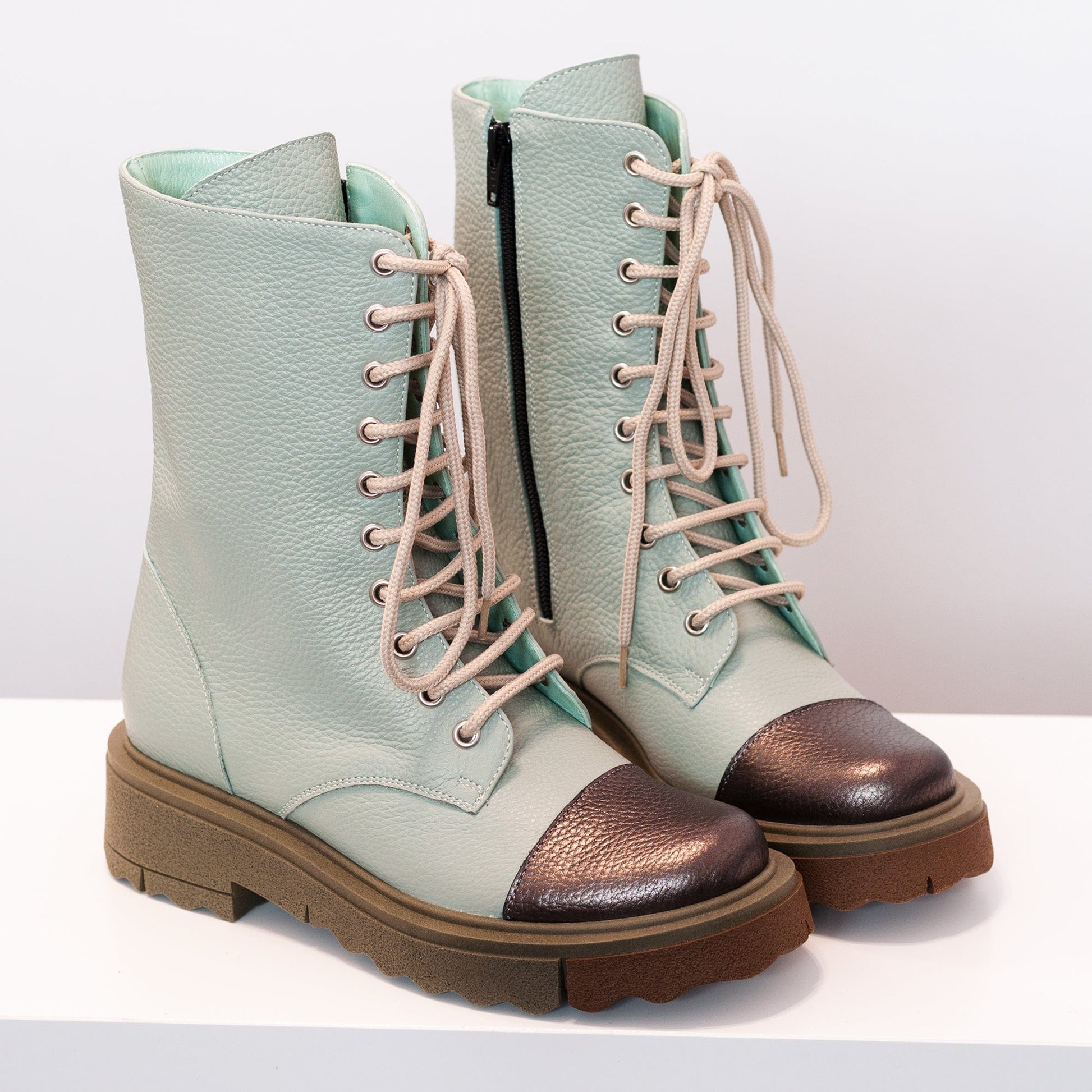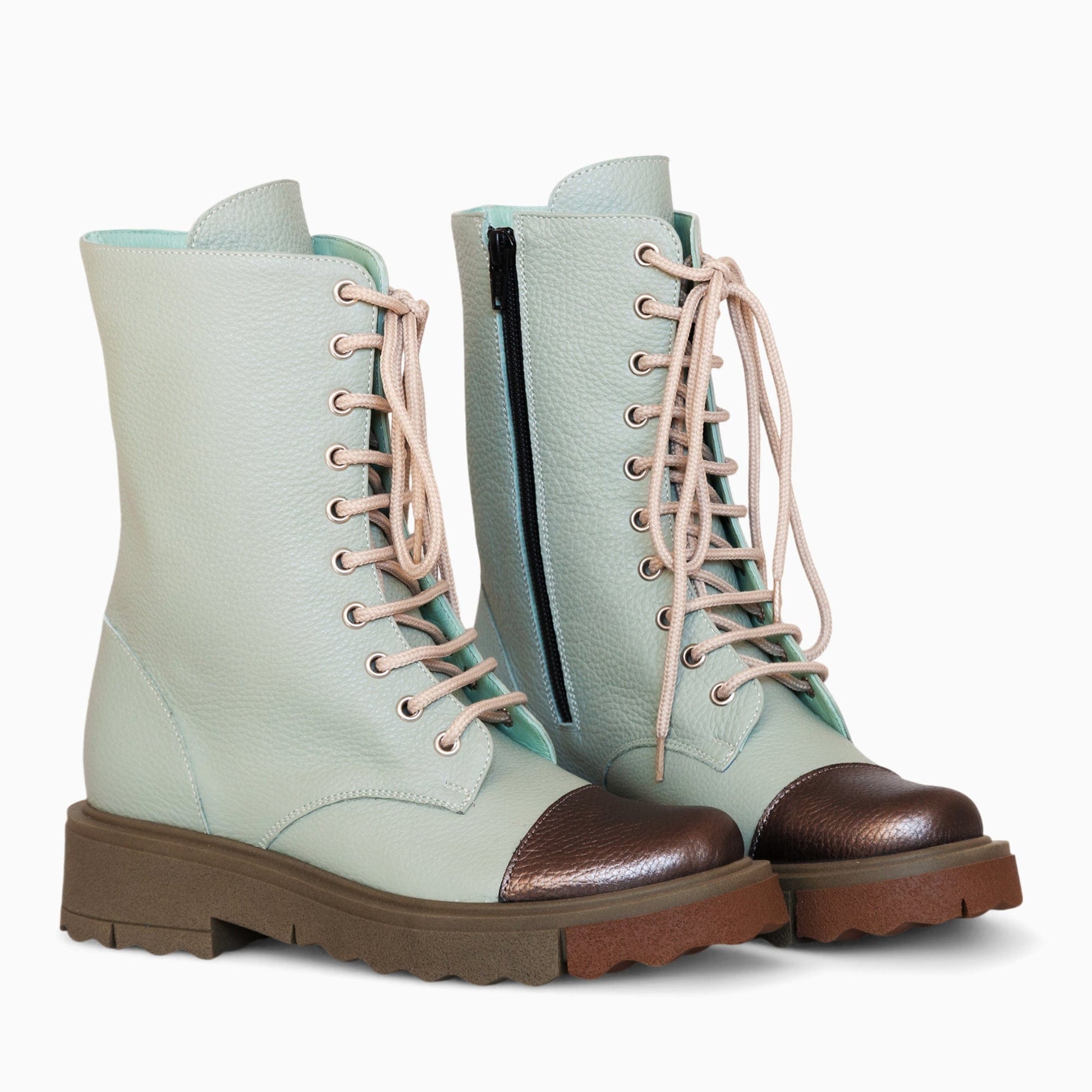 - Inchiderea se face cu siret si fermoar la interior;