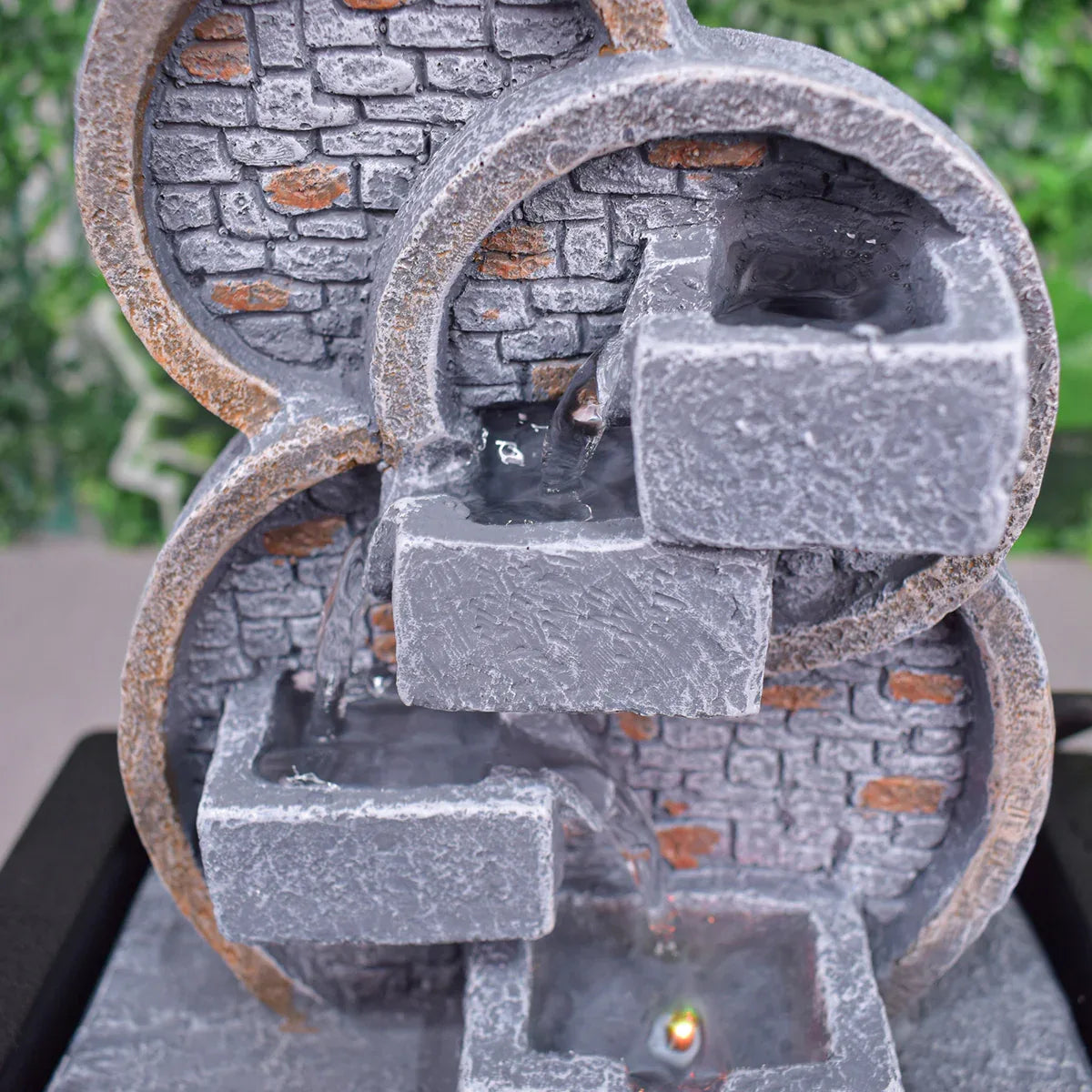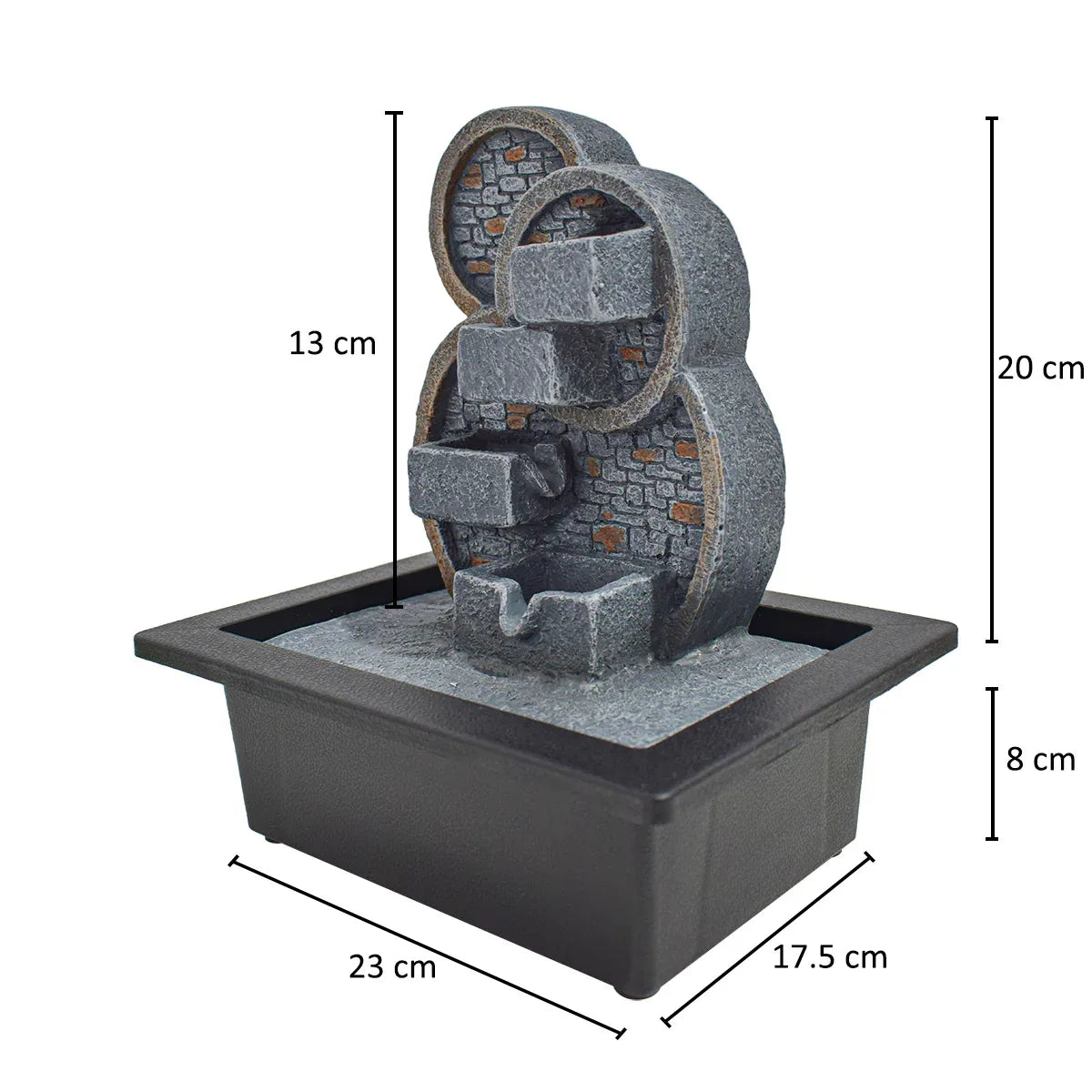 Fantana decorativa, de interior, iluminare LED si pompa de apa. Redand sunetele unei mici cascade, fantana functioneaza drept un articol decorativ deosebit dar si ca mediu de relaxare.. Constructia sa solida ii asigura durabilitatea necesara unei perioade de utilizare indelungate.. Cu aspectul sau unic si dimensiunile avantajoase, aceasta este, de asemenea, perfecta drept cadou de inaugurare a casei sau alte evenimente.. Design artistic. Modelul fantanii este unul clasic, pictat de mana, completat de lumina calda si apa curgatoare a acestia.. Se integreaza cu usurinta in incapere, reprezentand in acelasi timp un element inedit ce confera originalitate decorului.. Usor de utilizat. Odata conectata pompa sumbersibila la furtunul din interiorul fantanii, este suficienta umplerea recipientului acesteia cu apa si pot fi apoi pornita oricand.. Pompa dispune de un sistem de reglare a puterii, putand astfel ajusta viteza de circulare a apei.. Specificatii. Dimensiuni: 23x17x28cm. Material: Rasina. Greutate: 1.2kg