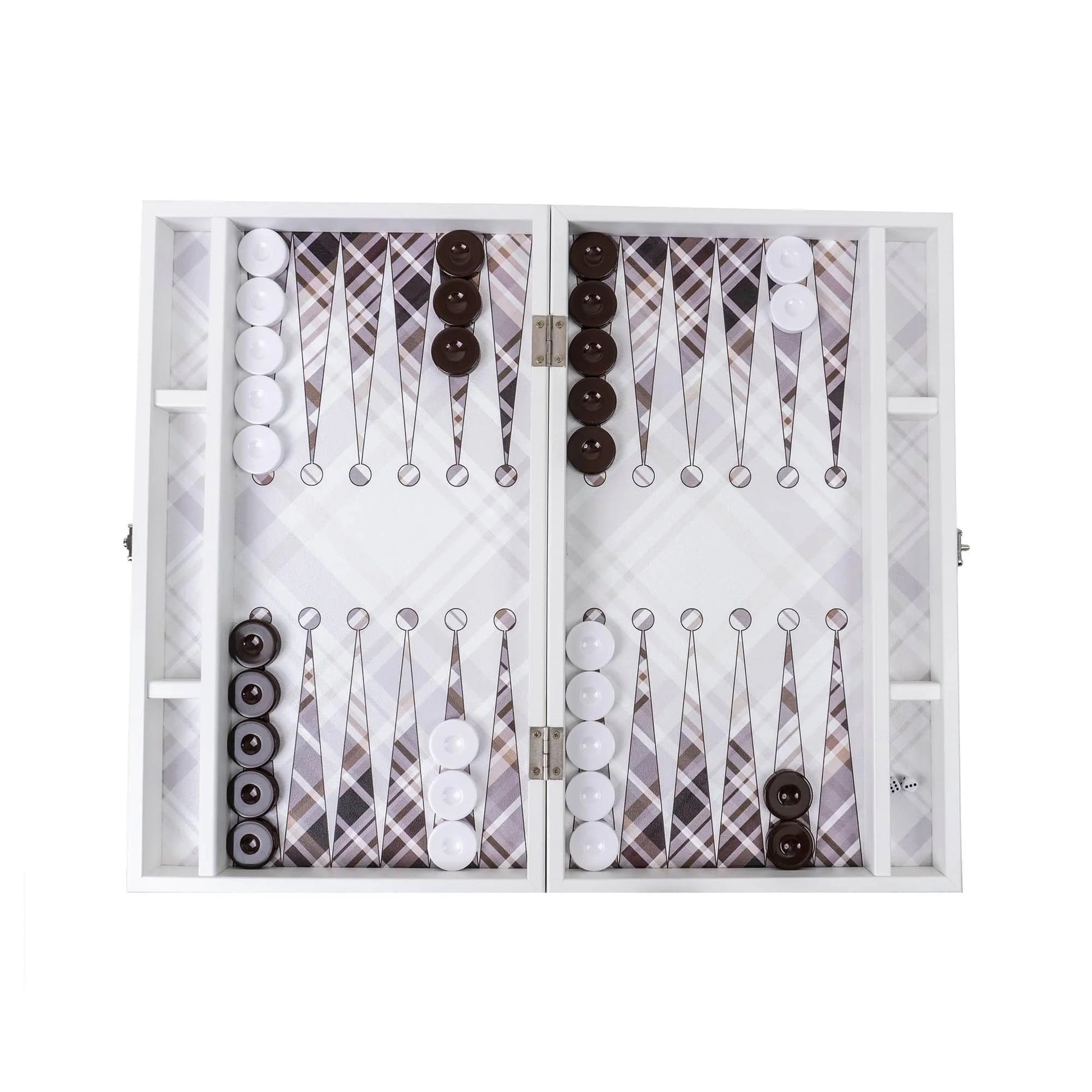Joc de table din piele ecologica 48x48cm, alb.. Jocul de table este de o calitate superioara datorita lacului de protectie ce ii confera o stralucire si o alunecare perfecta a pieselor pe tabla de joc.