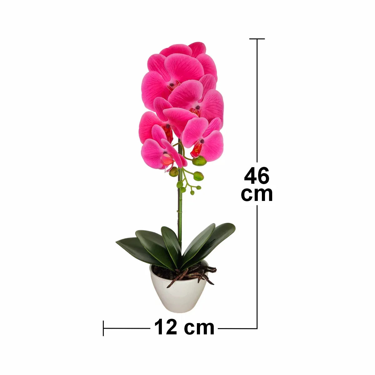 Orhidee in ghiveci ceramic, 12x12x46 cm, Naimeed D5820. Adauga culoare decorului casei tale cu aceasta orhidee artificiala cu aspect 100% natural, chiar si la atingere.. Fie ca vorbim de living, dormitor sau chiar birou, aceasta orhidee artificiala in ghiveci ofera un accent cochet pentru un decor modern si elegant.. Un alt beneficiu al florilor artificiale este faptul ca sunt non-alergice, fiind perfecte pentru a fi daruite oricarei persoane dragi.. Nu are nevoie de ingrijire zilnica si isi va pastra aspectul natural pentru o perioada lunga de timp.. Este ideala pentru spatiile fara lumina naturala si pentru cei care nu au timpul necesar pentru a avea grija de plante.Specificatii. Dimensiune: 12x12x46cm. Culoare: Mov. Material: PP, ceramica. Greutate: 0.43kg