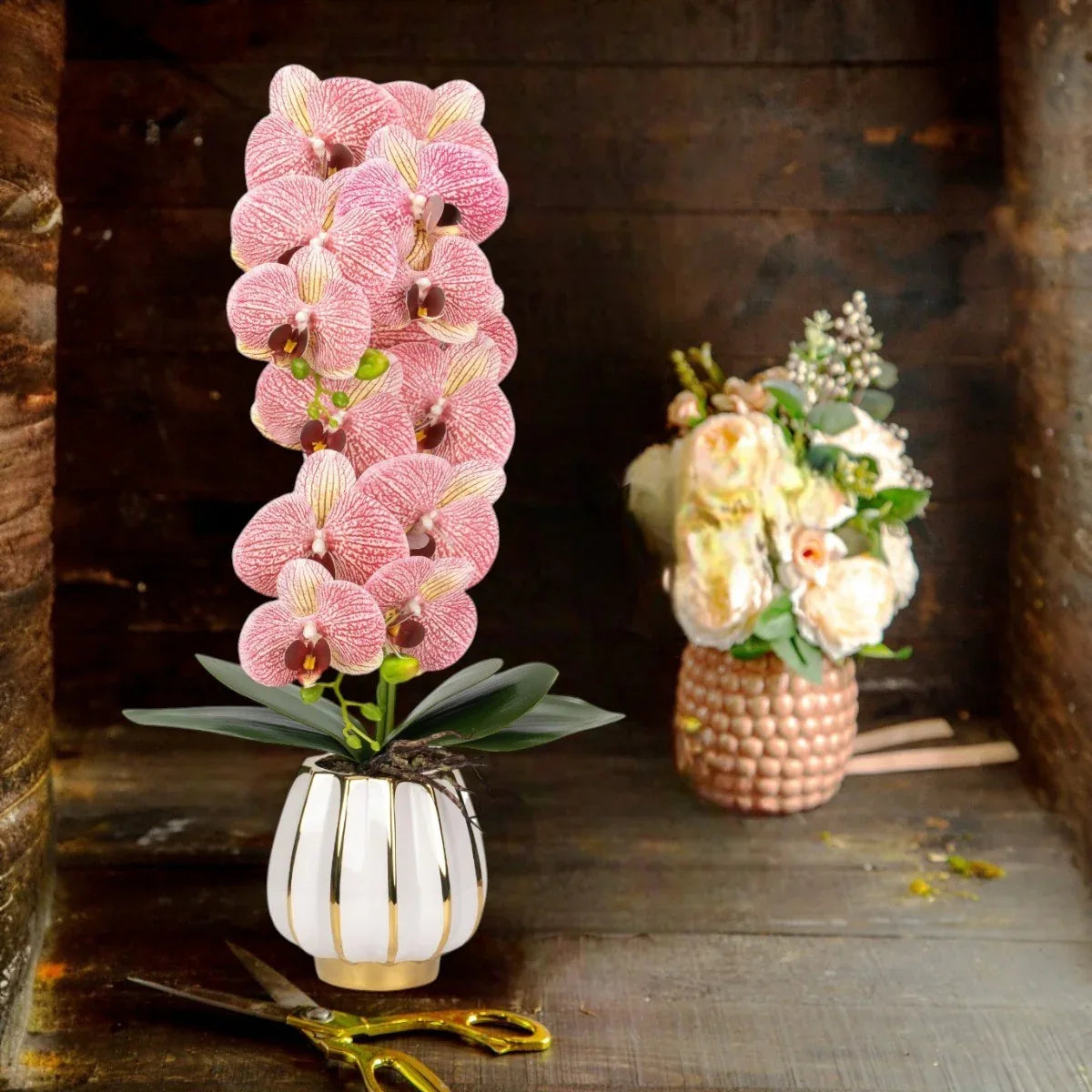 Orhidee cu aspect natural in ghiveci ceramic, 79 cm, Naimeed D6899, Roz