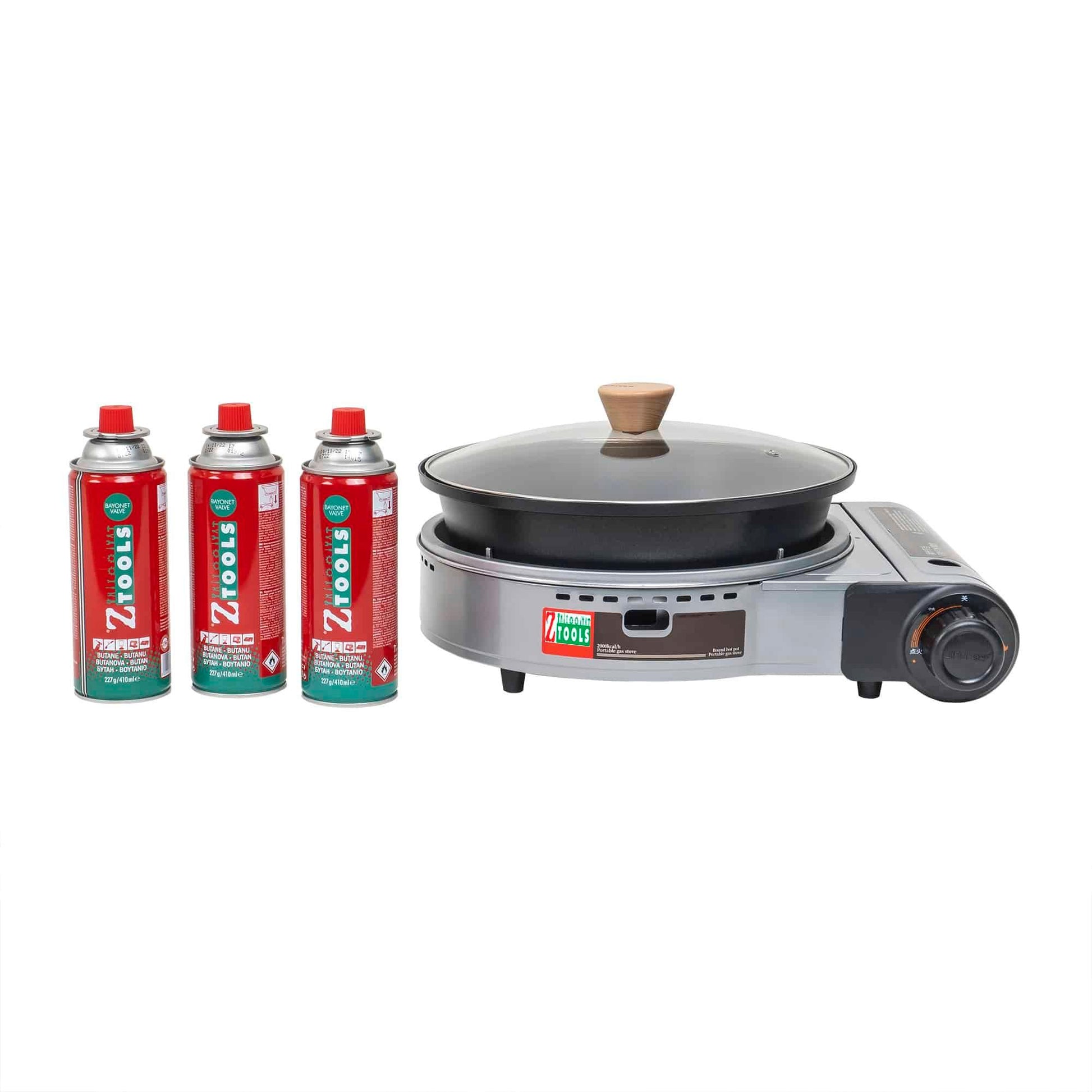 Pachet aragaz camping, cu oala si capac de sticla, putere 2.3kw, aprindere electrica, gri + 3 butelii 410ml / ZTS 5613_1