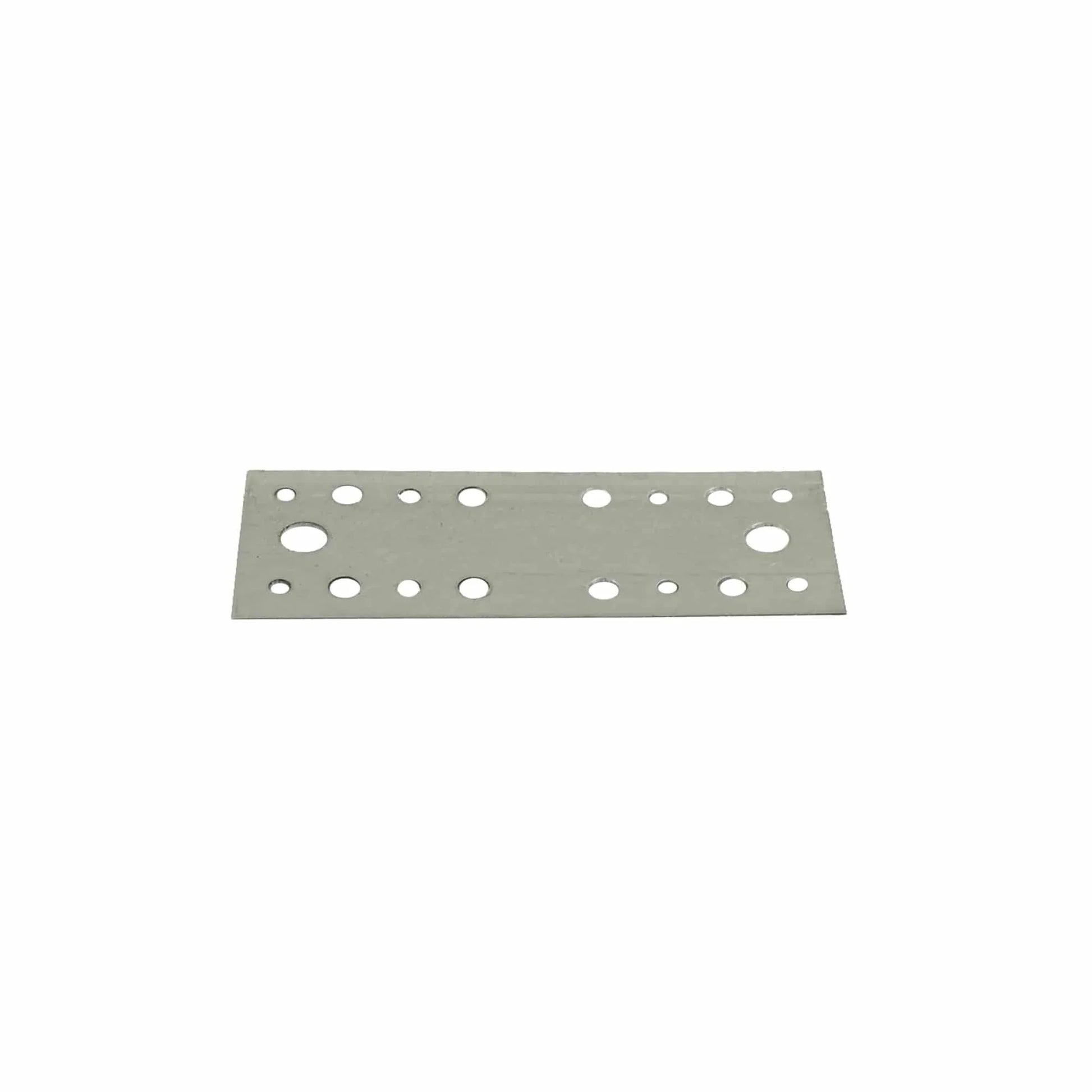 Placa perforata din otel 90x210 mm.. Placa perforata reprezinta un element de imbinare. Este plata si are o forma rectangulara.. Este confectionata din tabla de otel zincata, are culoarea argintie si dimensiunile 90 x 210 x 2 mm.