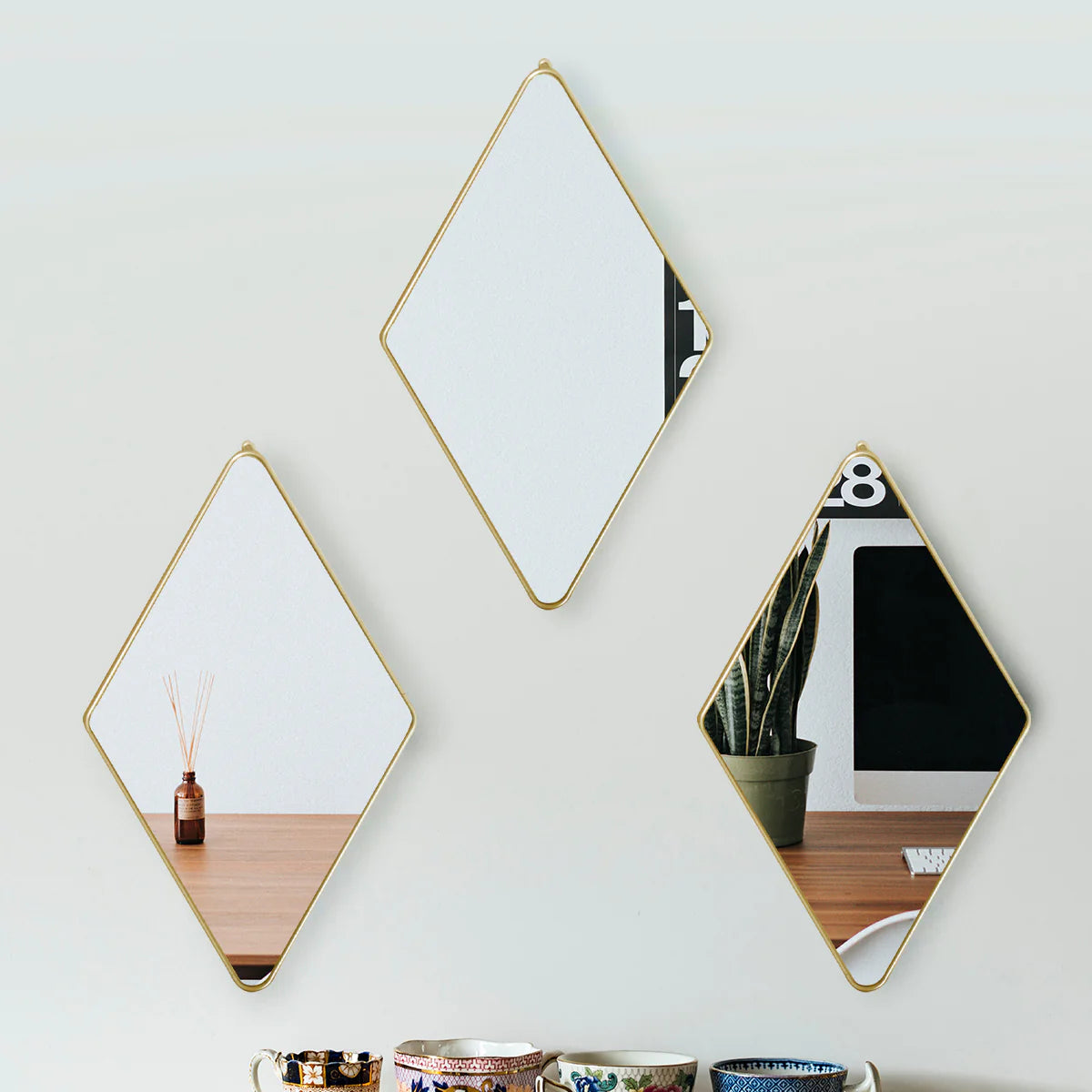 Set 3 Oglinzi Decorative, Naimeed D4607G, Auriu, 17x1x28 cm