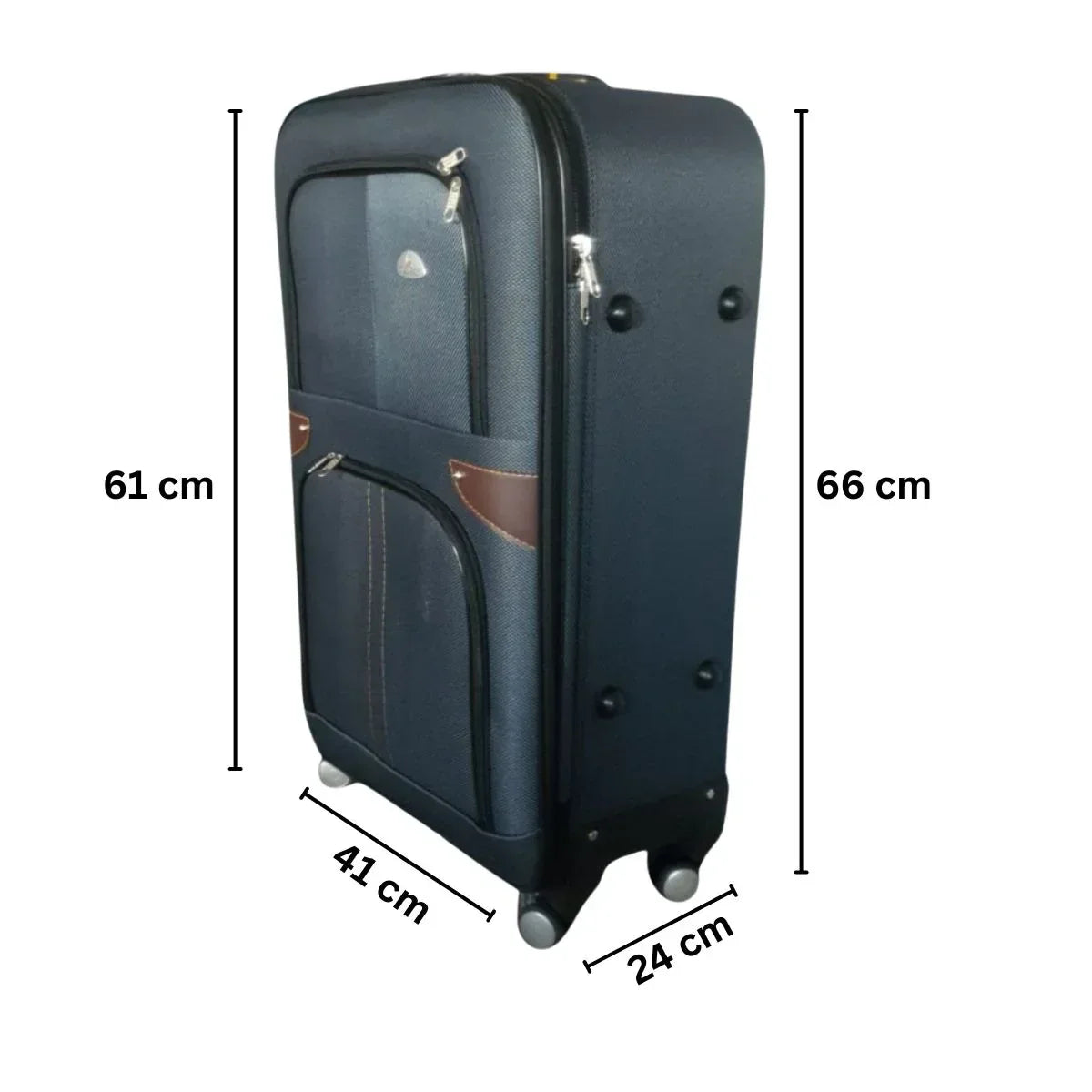 Troler de voiaj, din material textil. Multumita designului sau compact si usor, poate fi folosit in orice calatorie.. Dimensiunile sale optime si compartimentarea inteligenta permit organizarea eficienta a obiectelor personale.. Securitate si confort suplimentar. Un aspect important al acestui troler este cifrul incorporat, care ofera un nivel suplimentar de securitate pentru bagaje.. Poti alege o combinatie personalizata pentru a-ti proteja continutul si a te simti mai in siguranta.. De asemenea, spatiul interior al trolerului poate fi extins prin simpla deschidere a unui fermoar.. Roti silentioase cu rotire 360. Rotile cu rotire 360 permit o manevrare usoara si fluenta, indiferent de suprafata pe care te deplasezi.. Indiferent daca te afli pe aeroporturi aglomerate, pe strazi pavate sau pe terenuri accidentate, trolerul se va deplasa fara probleme.. Acestea sunt, de asemenea, foarte silentioase, datorita invelisului lor din cauciuc.. Maner telescopic. Pe langa cele doua manere siliconice plasate in partea dreapta si partea superioara a trolerului, acesta dispune si de un maner telescopic.. Acesta faciliteaza transportul trolerului, ajustandu-l in functie de preferintele si inaltimea ta.. Specificatii. Dimensiuni exterioare: 41x24x66cm. Capacitate: 65L. Material: Textil. Culoare: Gri
