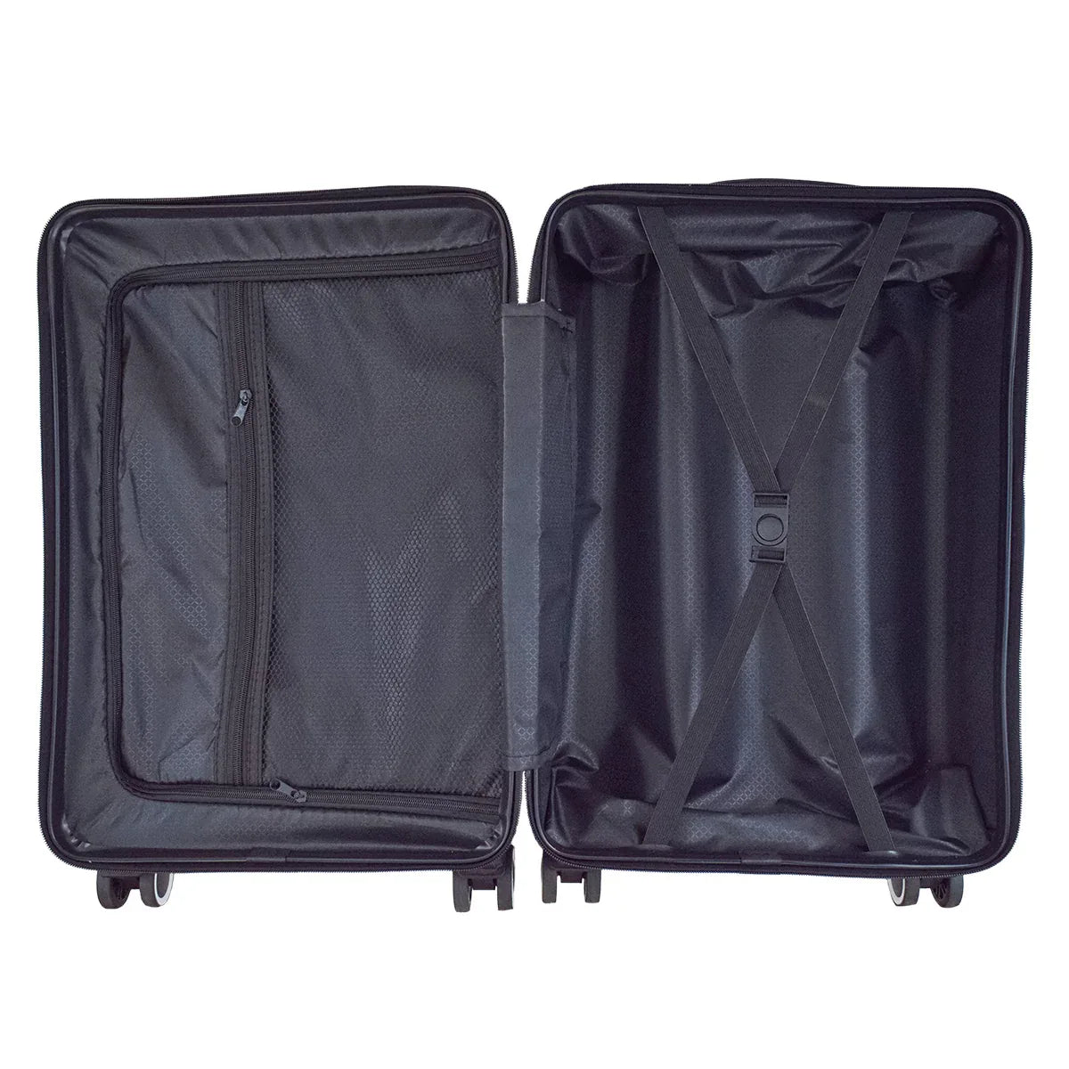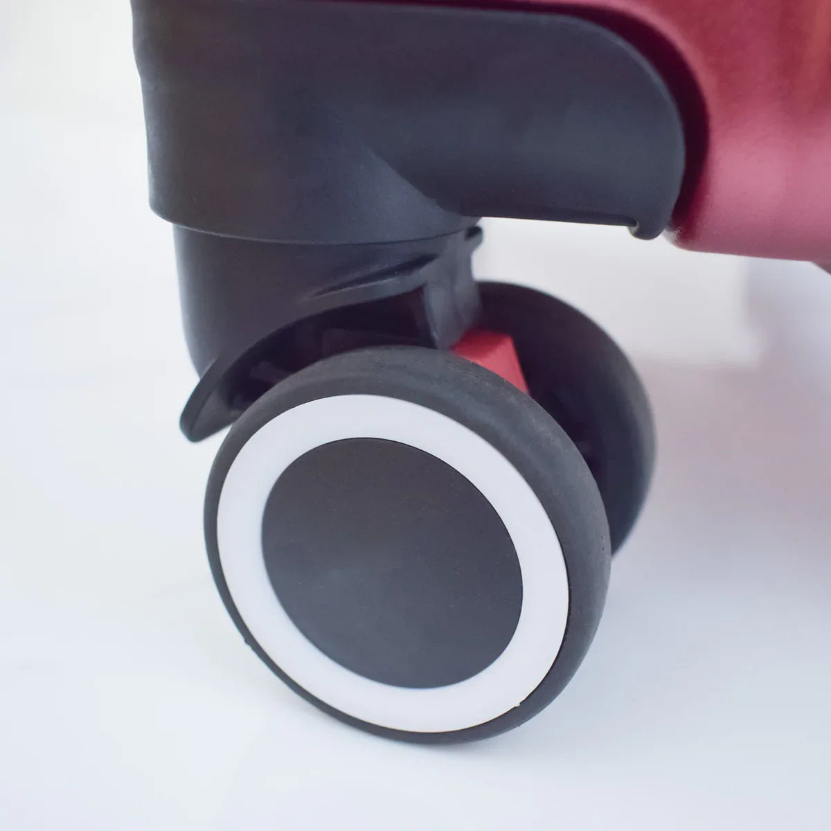 Troler de voiaj, din ABS. Multumita designului sau compact si usor, poate fi folosit in orice calatorie.. Dimensiunile sale optime si compartimentarea inteligenta permit organizarea eficienta a obiectelor personale.. Material durabil si rezistent. ABS-ul din care este realizat este durabil si rezistent la socuri, oferind protectie excelenta pentru continutul din interior.. Rezistenta trolerului este si mai ridicata datorita elementelor metalice si celor din plastic dur plasate pe zonele expuse frecvent uzurii.. Securitate si confort suplimentar. Un aspect important al acestui troler este cifrul incorporat, care ofera un nivel suplimentar de securitate pentru bagaje.. Poti alege o combinatie personalizata pentru a-ti proteja continutul si a te simti mai in siguranta.. Dispune, de asemenea, de un carlig pentru agatarea bagajului de mana.. Roti silentioase cu rotire 360. Rotile cu rotire 360 permit o manevrare usoara si fluenta, indiferent de suprafata pe care te deplasezi.. Indiferent daca te afli pe aeroporturi aglomerate, pe strazi pavate sau pe terenuri accidentate, trolerul se va deplasa fara probleme.. Acestea sunt, de asemenea, foarte silentioase, datorita invelisului lor din cauciuc.. Rotile pot fi detasate apasand butonul rosu plasat pe acestea, salvand astfel 4cm din spatiul ocupat.. Maner telescopic. Pe langa cele doua manere siliconice plasate in partea dreapta si partea superioara a trolerului, acesta dispune si de un maner telescopic.. Acesta faciliteaza transportul trolerului, ajustandu-l in functie de preferintele si inaltimea ta.. Astfel, poate fi evitata exercitarea unei presiuni excesive asupra spatelui sau umerilor.. Specificatii. Dimensiuni exterioare: 50x31x79cm (L x l x h) - incluzand rotile. Dimensiuni interioare: 44x27x69cm (L x l x h). Capacitate: 80l. Material: ABS. Culoare: Rosu