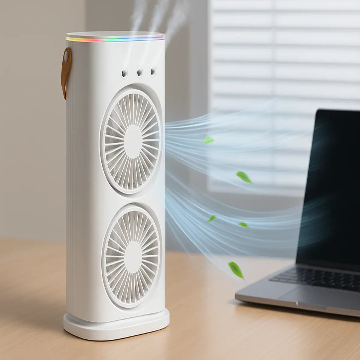 Ventilator dublu, umidificator, Naimeed D7182, incarcare USB, acumulator 2000mAh, telecomanda, 3 trepte de viteza, Alb